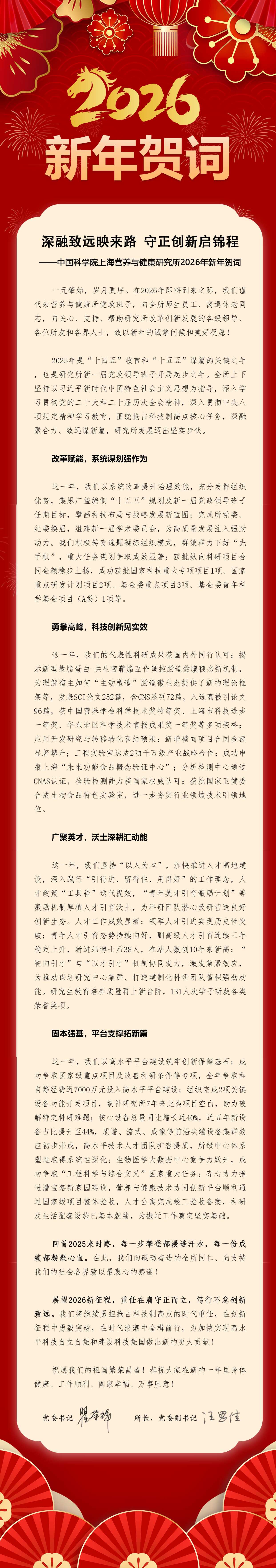 中國科學(xué)院上海營養(yǎng)與健康研究所2026年新年賀詞