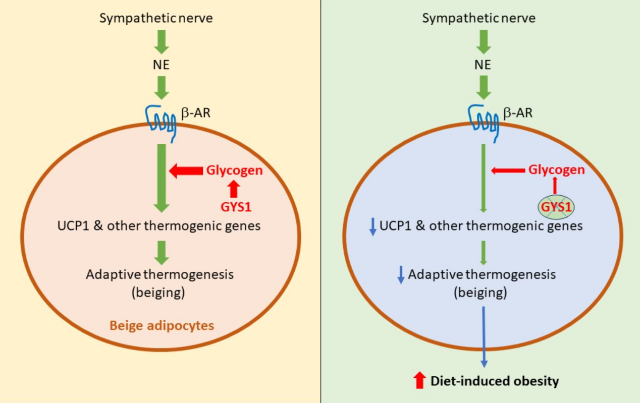 脂肪糖原合成影響米色脂肪適應性產熱和飲食誘導的肥胖