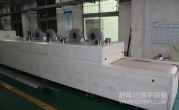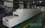2、外形尺寸(約):總長24000mm*總高1690mm*總寬1220mm,地面到網帶的高度為850mm,爐體內進料高度為150mm;烘干部分總長14000mm,分7段獨立控溫(每段4個測溫熱電偶),每段2000mm。冷卻段長4000mm,UV預留區(qū)長2000mm,前后緩沖區(qū)各長500mm,進出料部分長1500mm, 爐體前后裝有急停開關。