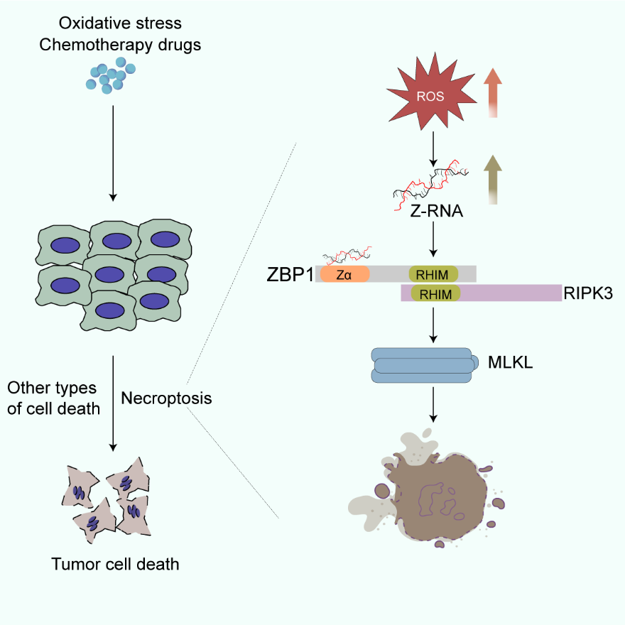 圖注:氧化應激誘導的Z-RNA通過激活ZBP1依賴的程序性壞死增強腫瘤對化療藥物的敏感性