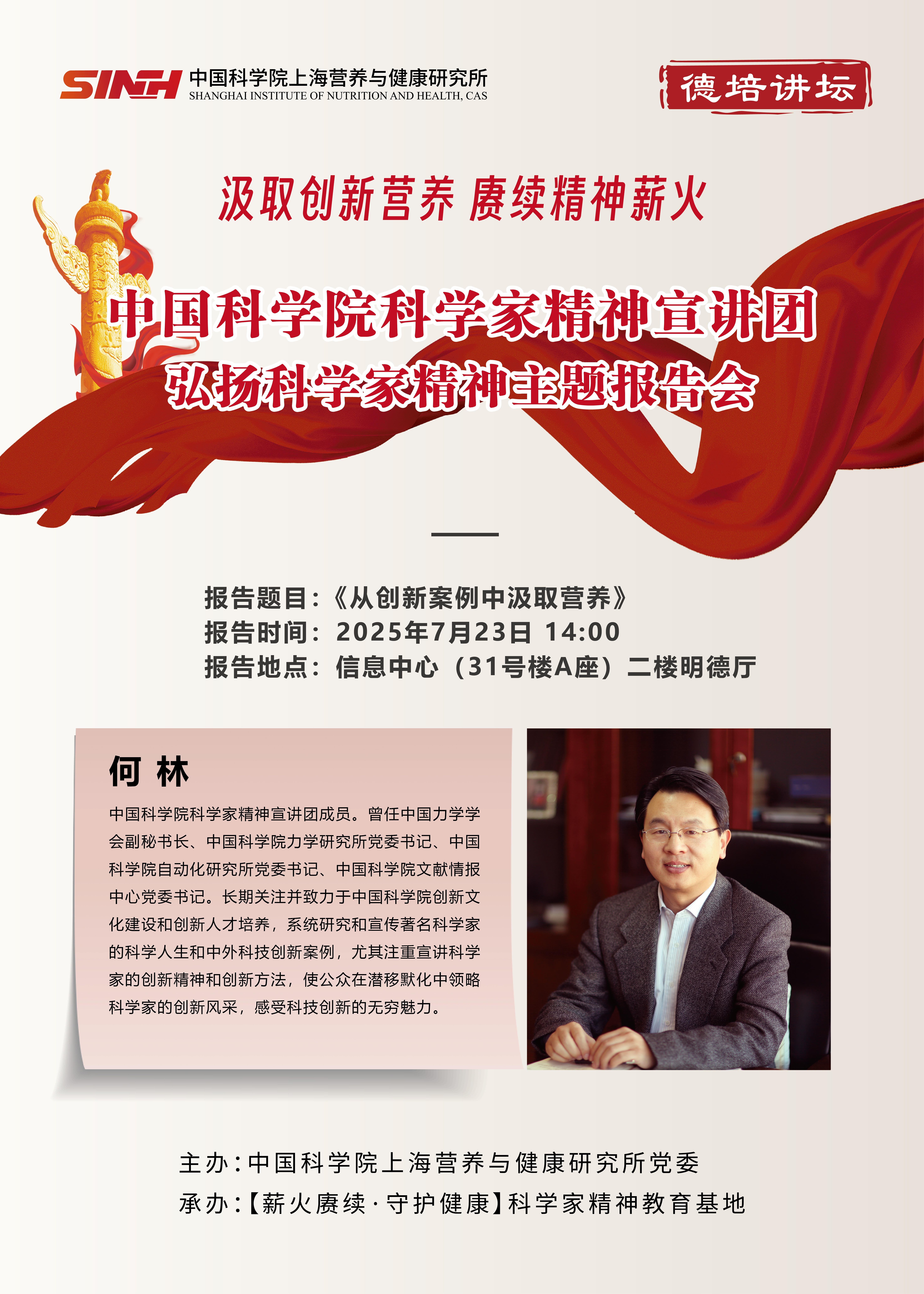 7月23日|中國科學院科學家精神宣講團弘揚科學家精神主題報告會