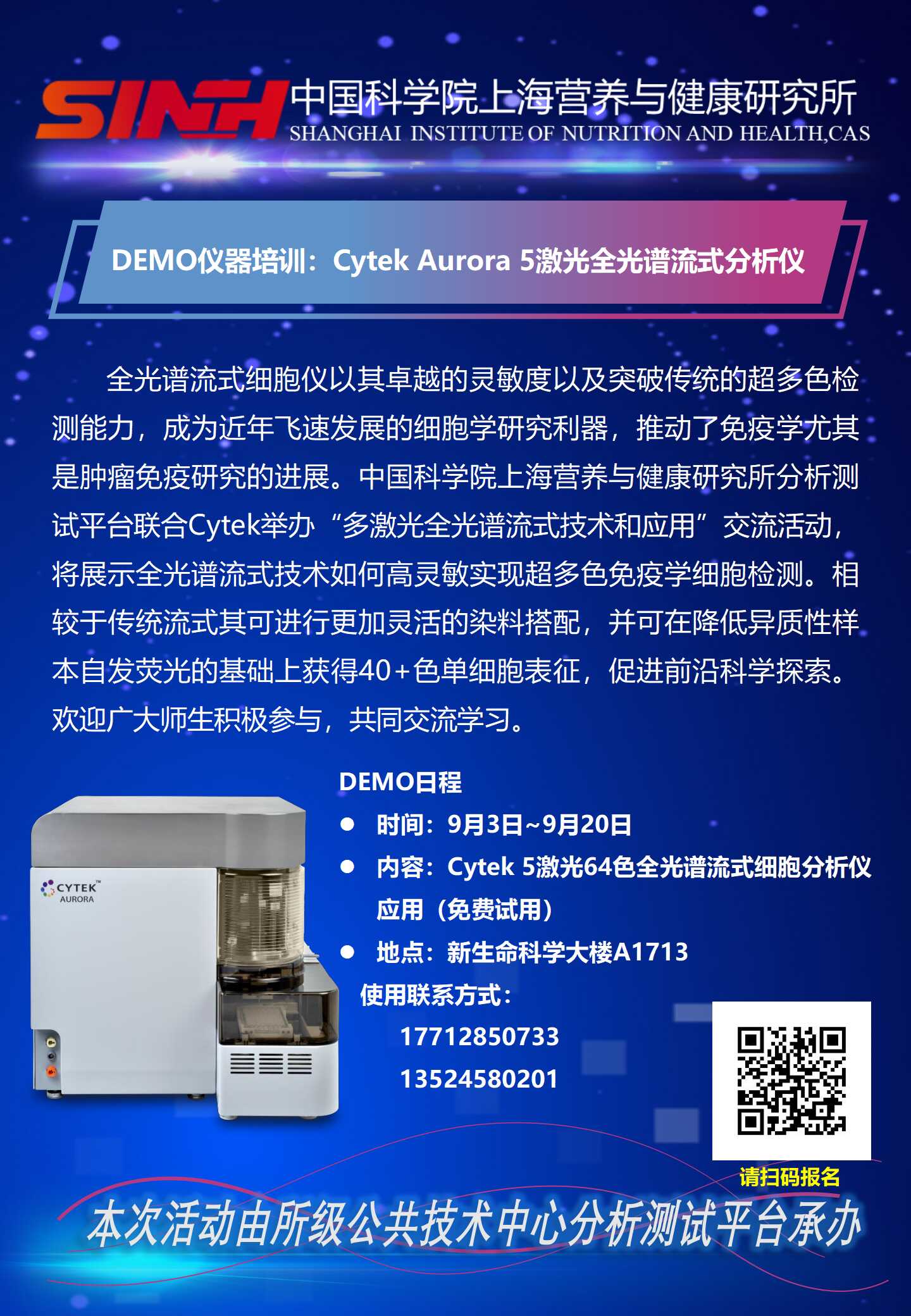 9月3日至20日|DEMO儀器培訓:Cytek Aurora 5激光全光譜流式分析儀