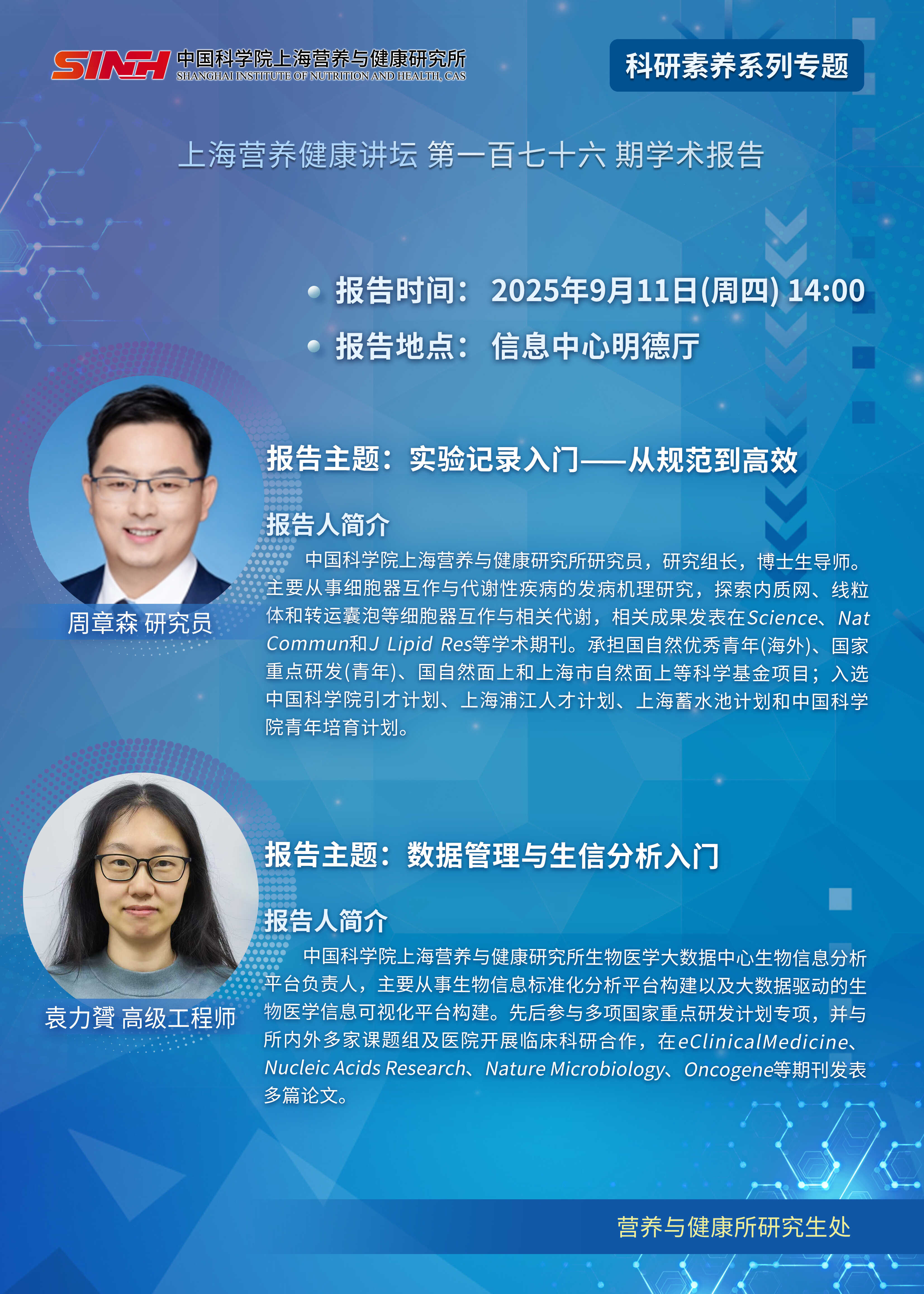 9月11日|實(shí)驗(yàn)記錄入門——從規(guī)范到高效;數(shù)據(jù)管理與生信分析入門-上海營(yíng)養(yǎng)健康講壇