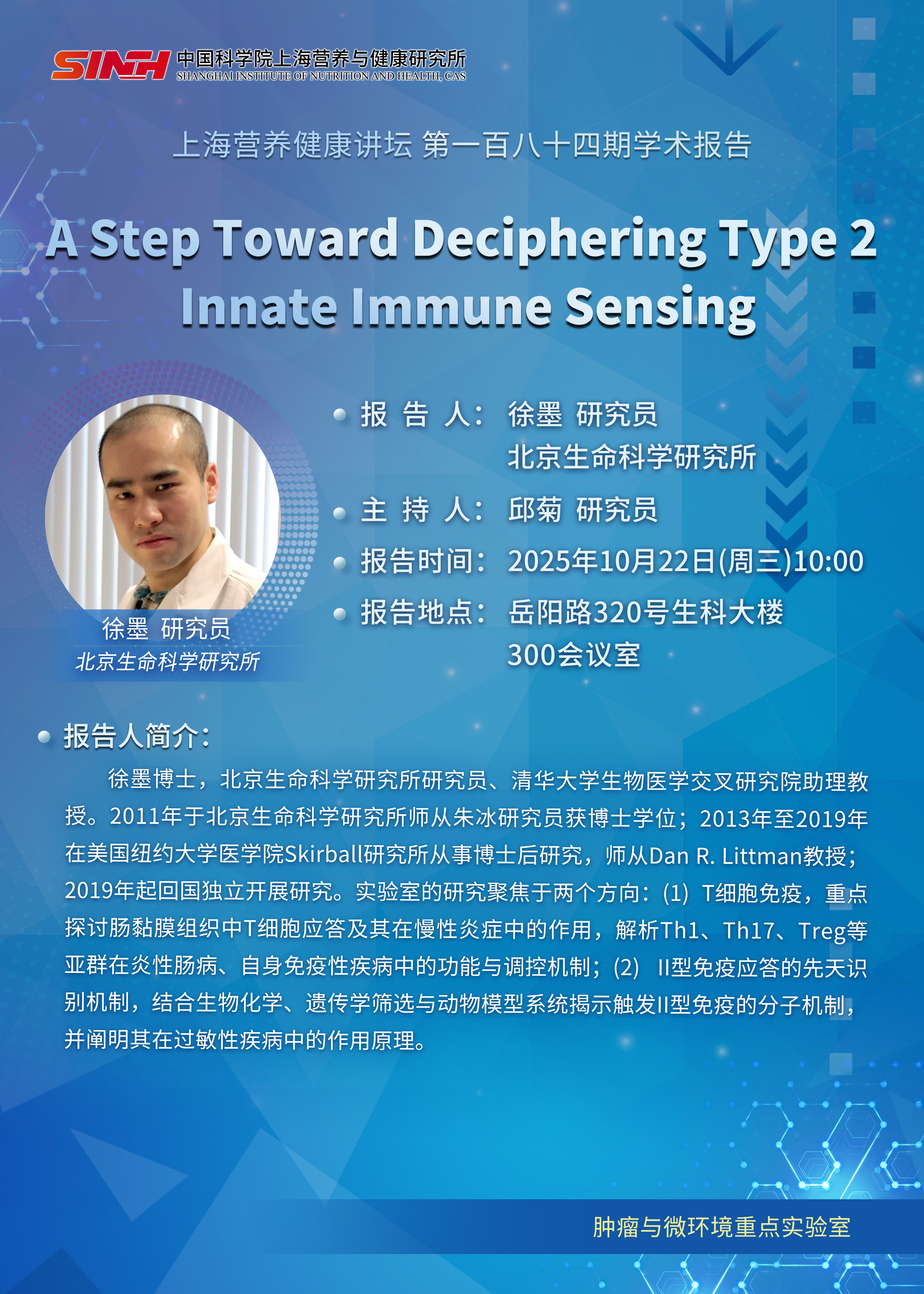 10月22日|A Step Toward Deciphering Type 2 Innate Immune Sensing-上海營養健康講壇